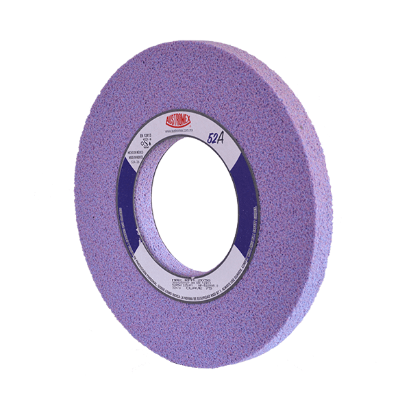 Fabricada con grano cerámico y oxido de aluminio premium color rosa. La mejor alternativa para las operaciones de rectificado, en especial la de las superficies planas y aceros difíciles de maquinar. No se tapa. Para uso en aceros D2, aceros rápidos, acero inoxidable endurecido.